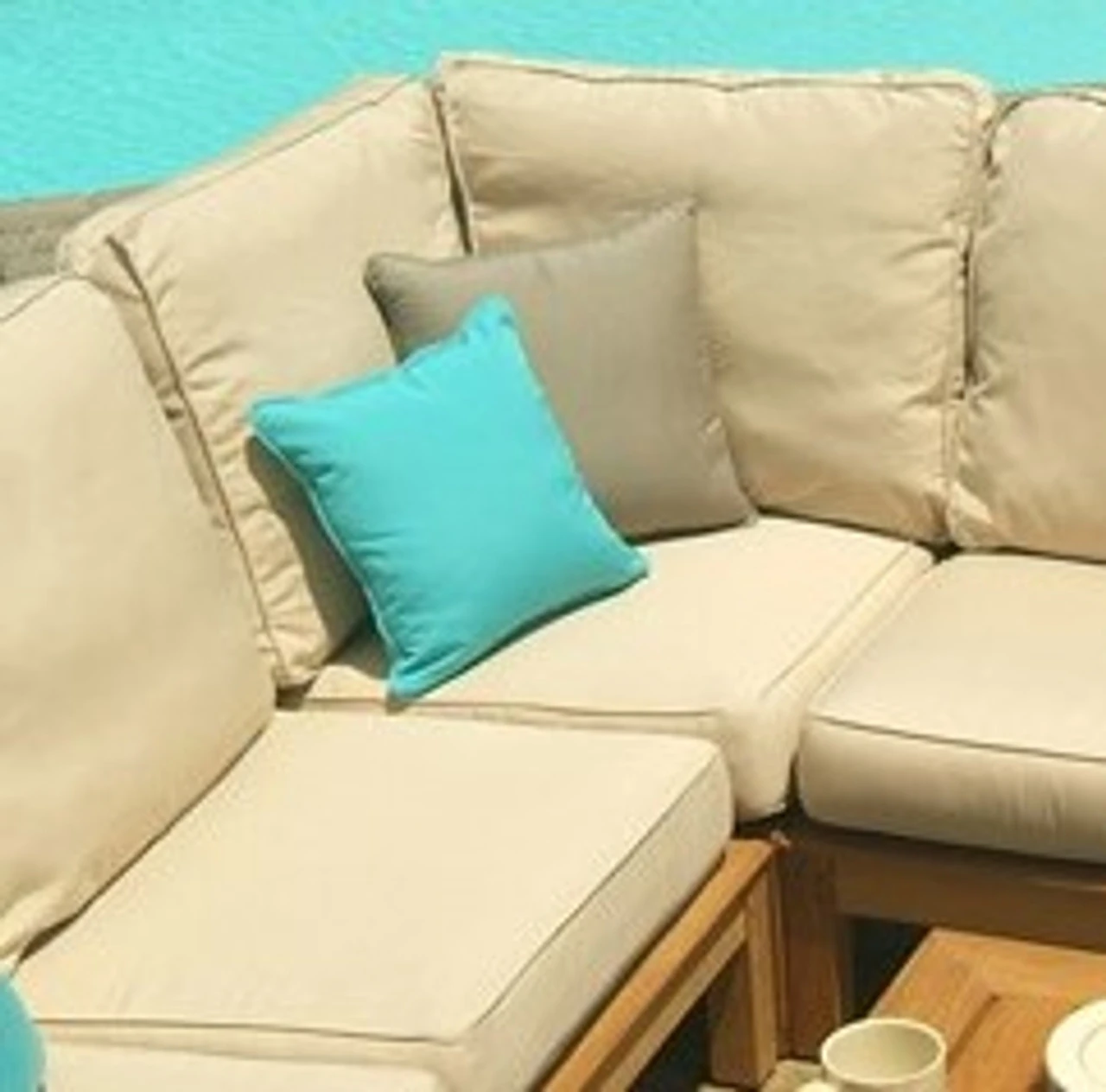 Plush and good looking, the Three Birds Monterey Teak Sectional Corner Chair from Outdoor Furniture Plus is also durable, thanks to its grade A plantation-grown teak construction and its comfy cushions Sunbrella fabric. Use this attractive piece to fill an empty corner on your patio or team it up with our Three Birds Monterey Teak Sectional Armless Chair.