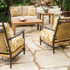 Some materials are just made for each other, like peanut butter and jelly…or powder-coated aluminum and teak. This mix of strength and timeless beauty creates the Three Birds SoHo 5-Piece Armchair Dining Set. Flaunting clean, modern lines, it’s a chic patio set from Outdoor Furniture Plus that’s perfect for poolside lunches, backyard BBQs, and any other al fresco gathering. Add a layer of comfort underneath it all by getting a patio rug. Then sit back, relax, and enjoy your new favorite spot!