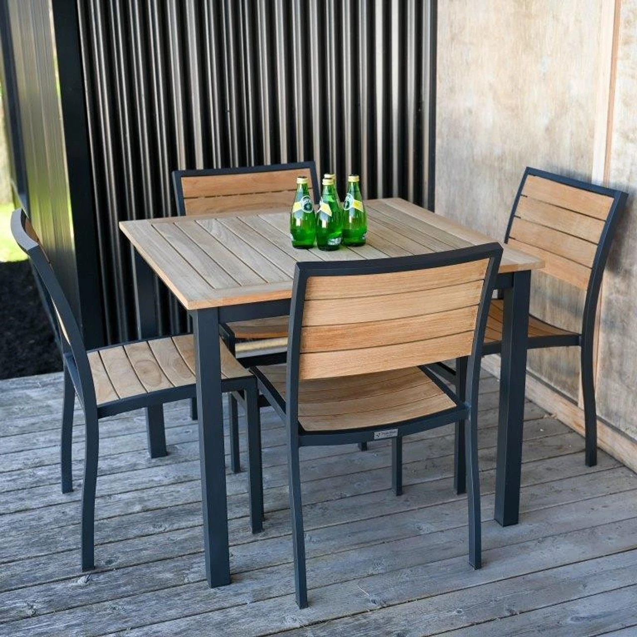 The Three Birds SoHo 5-Piece Side Chair Dining Set certainly knows its lines. With a modern, angled design bursting with clean lines, this patio set lets you eat in style and comfort. Details include aluminum frames and teak slats for a remarkable mix of strength and beauty. Plus, the chairs stack, so you can open up more floor space when they’re not in use. You can even add seat cushions and welting to this set from Outdoor Furniture Plus. Because the more options, the merrier!