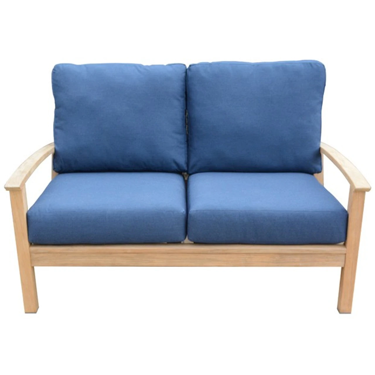 If you love comfort and value, youll love the Three Birds St. Lucia Deep Seating Teak Wood Loveseat from Outdoor Furniture Plus. This comfy two-seater is made of solid grade A plantation teak thats been carefully assembled with mortise and tenon joinery for extra strength. Plump, soft seat and back cushions and teaks famous weather resistance ensure an enduring love affair with this loveseat.