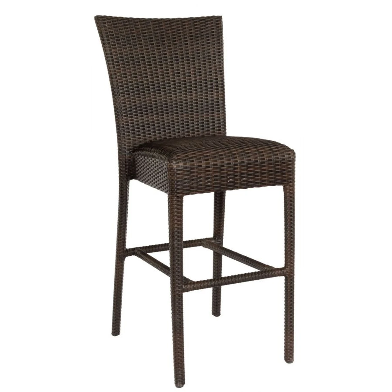 Furnish an outdoor patio area in the sleek, breezy style of your favorite restaurant with Wicker Padded Armless Bar Stools from Outdoor Furniture Plus. These all-weather wicker bar stools are much more durable than traditional wicker furniture, as they contain powder-coated aluminum bases for added stability. Their coffee colored wicker also pairs perfectly with many other Whitecraft by Woodard pieces, including our Patio Bar Tables. The armless style also makes it easy to add a whole set of stools to any bar or table.
