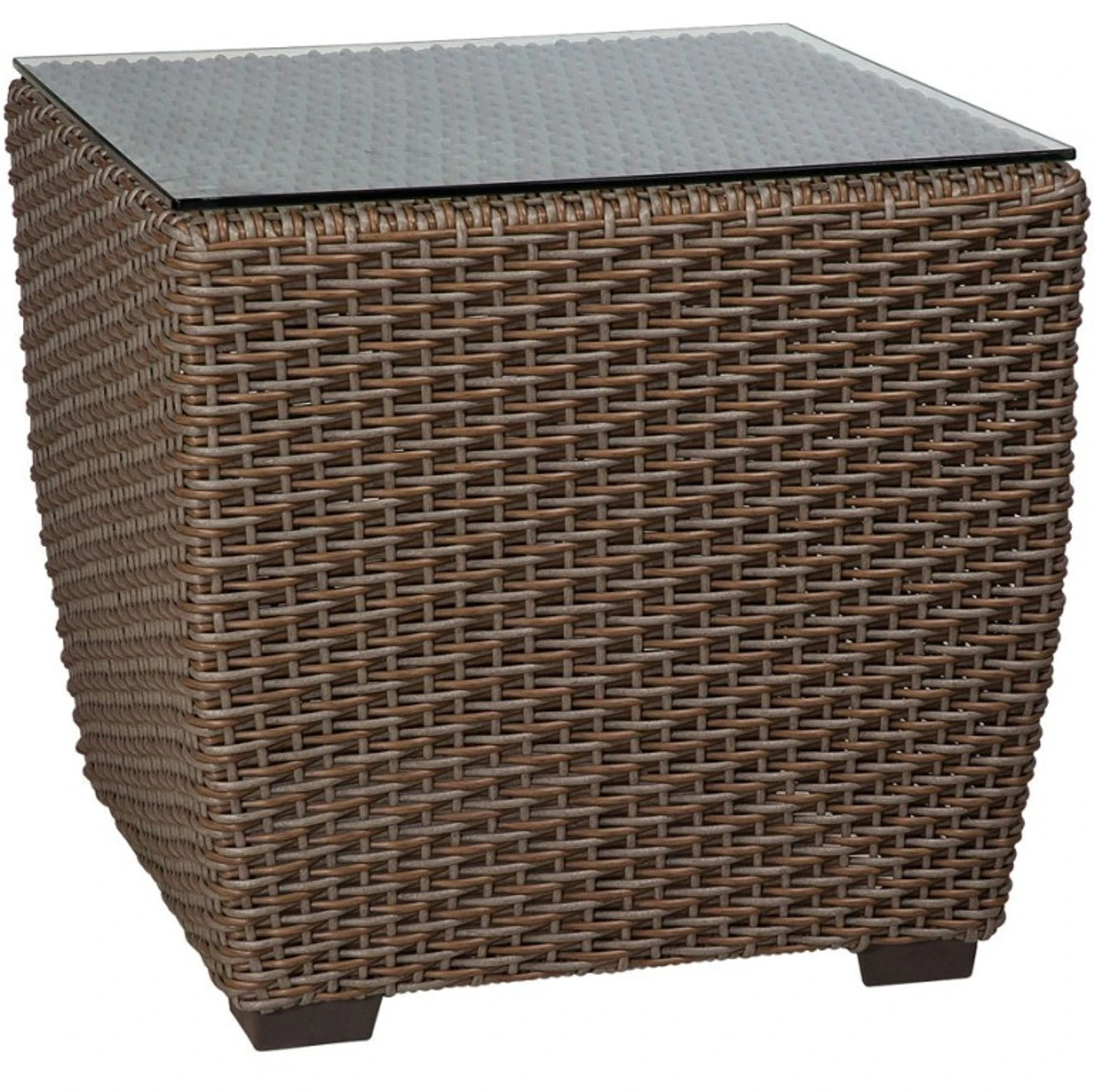 This Augusta Wicker End Table complements the rest of your Augusta furniture pieces while also creating added surface space for entertaining. It features an Aged Teak wicker exterior surrounding its rectangular shape, as well as a glass tabletop that makes it easy to balance drinks, snacks and decorative items. A powder-coated aluminum frame makes this end table very durable and sturdy, and it is resistant to weathering even through years of outdoor use. Use this with the Augusta Sofa or other Augusta pieces from Outdoor Furniture Plus.