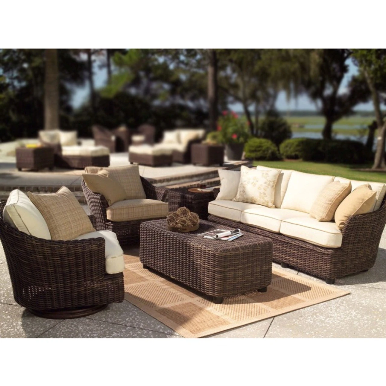 Enjoy your morning coffee or afternoon snack in style with the luxurious and long-lasting Woodard Sonoma Wicker Rectangular Coffee Table. A decadently dark Trax Mink weave complements just about any high-style patio, porch or pool deck. This wicker coffee table offers 24 inches by 48 inches of quality surface area for safely resting drinks and dcor. It will look right at home when styled with pieces from the Woodard Sonoma Collection. It comes standard with a Woodard three-year warranty and ships for free from Outdoor Furniture Plus.