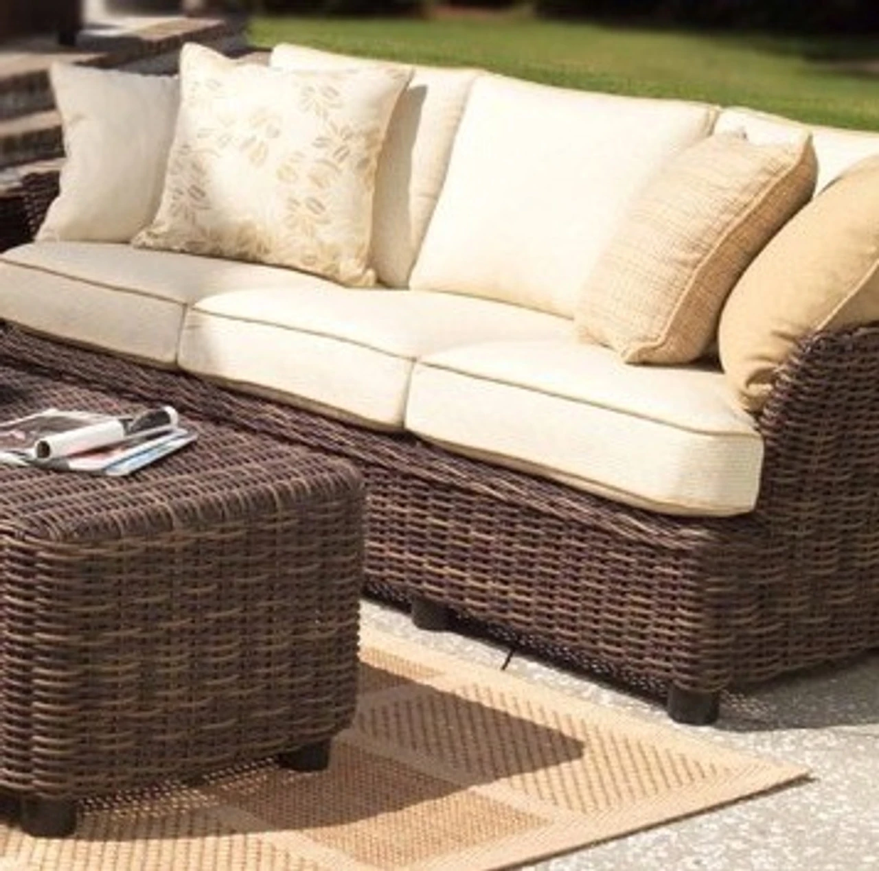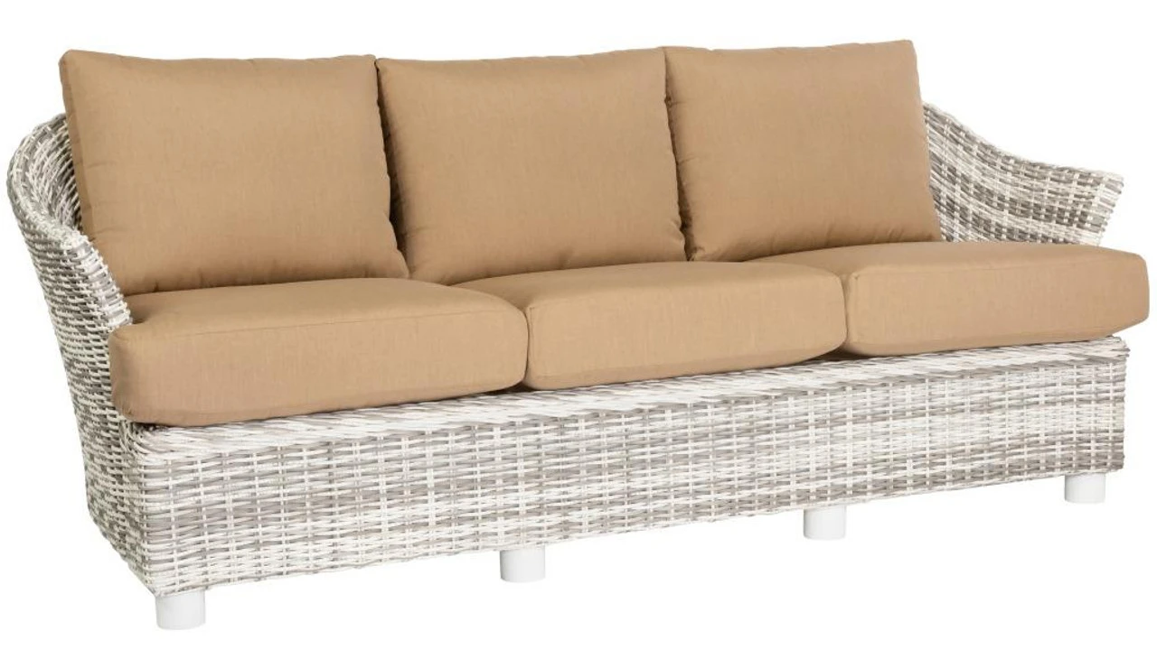 Bring the easy-going charm of the Woodard Sonoma Collection to your outdoor space with the exquisite Woodard Sonoma Wicker Sofa. Curl up with a good book on this dense cushion-topped 49-inch patio sofa and enjoy peace of mind knowing your purchase is backed by a three-year manufacturer’s warranty and the industry’s most trusted name brand. Woodard sofas are made with extremely durable synthetic wicker and have rust-resistant aluminum frames for safe placement in wet environments. Outdoor Furniture Plus will ship the Sonoma sofa to you with your preferred Sunbrella fabric cushions.