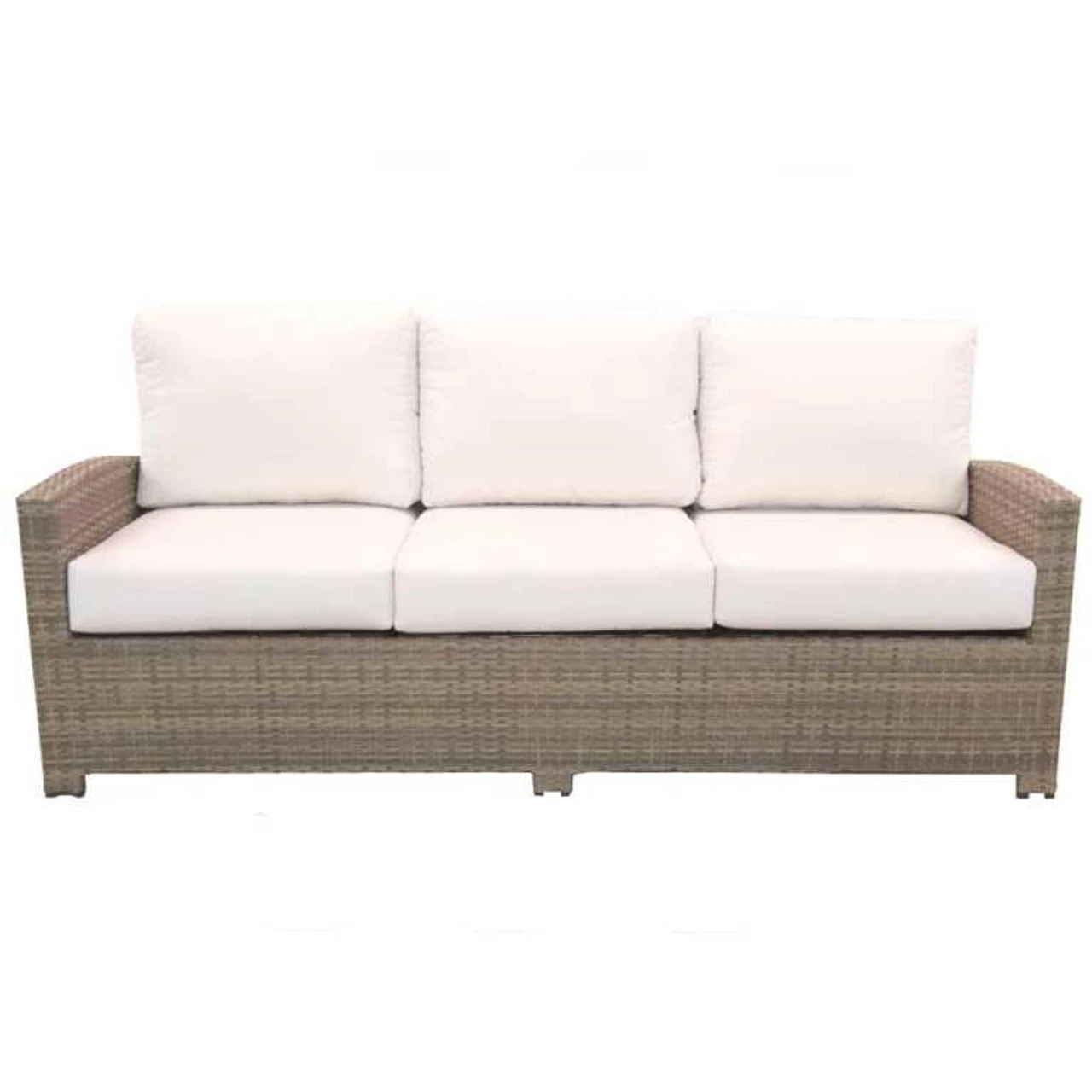Above Wicker Sofa Group Includes: (1) Barbados Sofa, (1) Barbados Club Chair, (1) Barbados Coffee Table & Glass Top. Each of the quick ship fabrics are featured above. Quick ship fabrics ship in 10 business days or less.