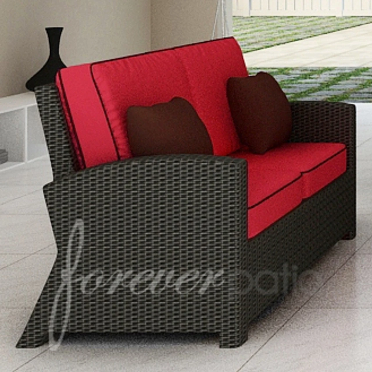 There are many reasons to love the Wicker Forever Patio Barbados Loveseat, including its weather- and UV-resistant materials, sturdy construction and fine modern design. You’ll also love the unparalleled service, free shipping and competitive pricing you’ll get from Outdoor Furniture Plus when you purchase this wicker patio loveseat from us. Coming complete with two thick seat cushions and two thick back cushions, this loveseat is a perfect match for many other Barbados pieces we carry, including the Wicker Forever Patio Barbados 32″ Square Coffee Table.