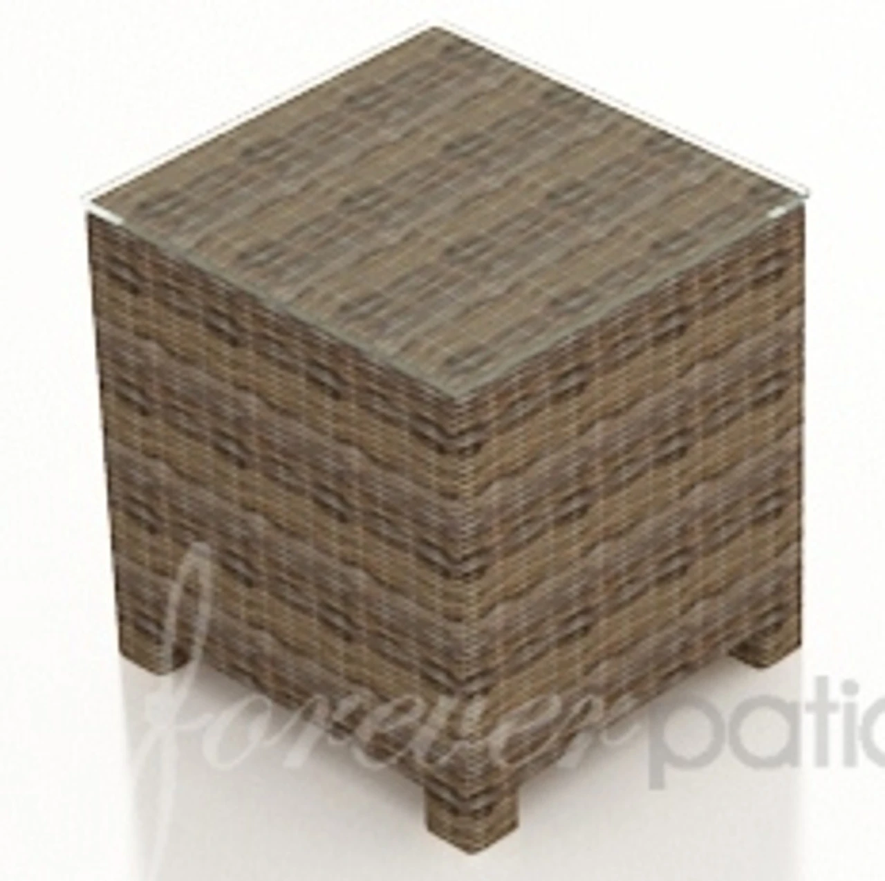 This smartly designed Forever Patio Cypress wicker square end table from Outdoor Furniture Plus will provide surface space for drinks, snacks, a stack of favorite books or extra seating. It’s a 20-inch by 20-inch square wicker table that’s 21 inches high. This cube-shaped table is crafted of tightly woven resin wicker in a contemporary design that’s UV-resistant on a durable powder-coated aluminum frame.