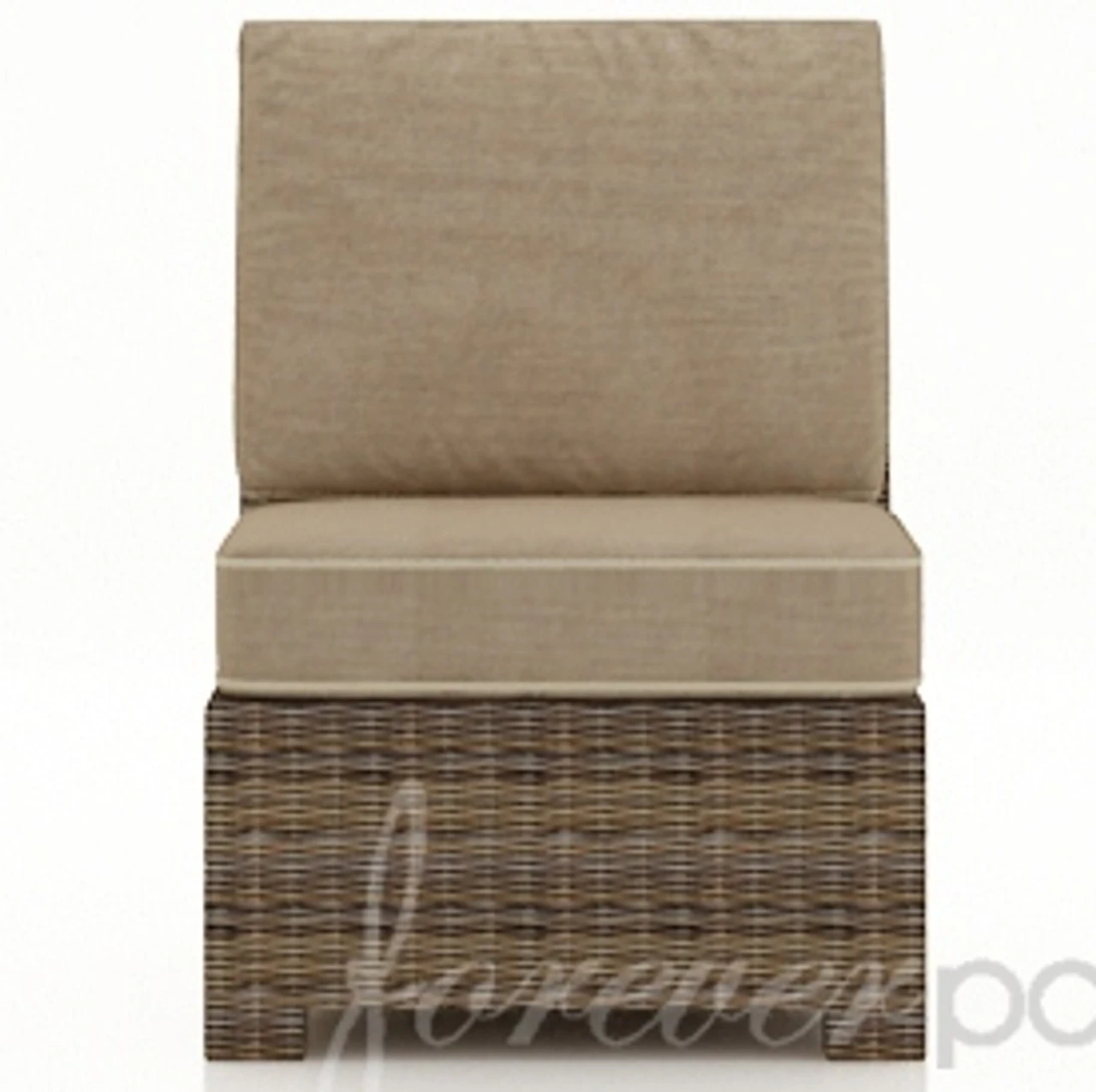 The Forever Patio Cypress wicker sectional armless chair is compact for small spaces, but with ultra-comfortable cushions that are each 6 inches thick. Choose cushion fabrics from an array of color and welting selections at Outdoor Furniture Plus. The UV-resistant wicker is built over a powder-coated aluminum frame for years of performance inside or outside your home. It’s 25 inches long, 32.5 inches deep and 33 inches high. Create a custom sofa sectional look with our Forever Patio Wicker Cypress Collection of sectional sofa seating pieces in wicker with plush seat and back cushions.