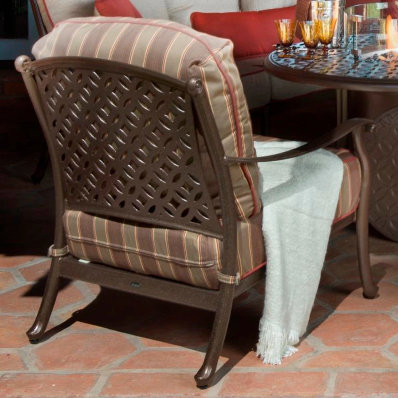 Grant a touch of charm to your outside seating situation with this Woodard Aluminum Casa Lounge Chair. Engineered of powder-coated aluminum, this seat from Outdoor Furniture Plus bestows a sophisticated accent on your patio, backyard, or deck. Besides being exceptionally durable, our chair is extremely comfortable thanks to a plump cushion. It also flaunts an elegant medallion pattern on its back and seat and comes in multiple finishes. Combine with more pieces in the collection!