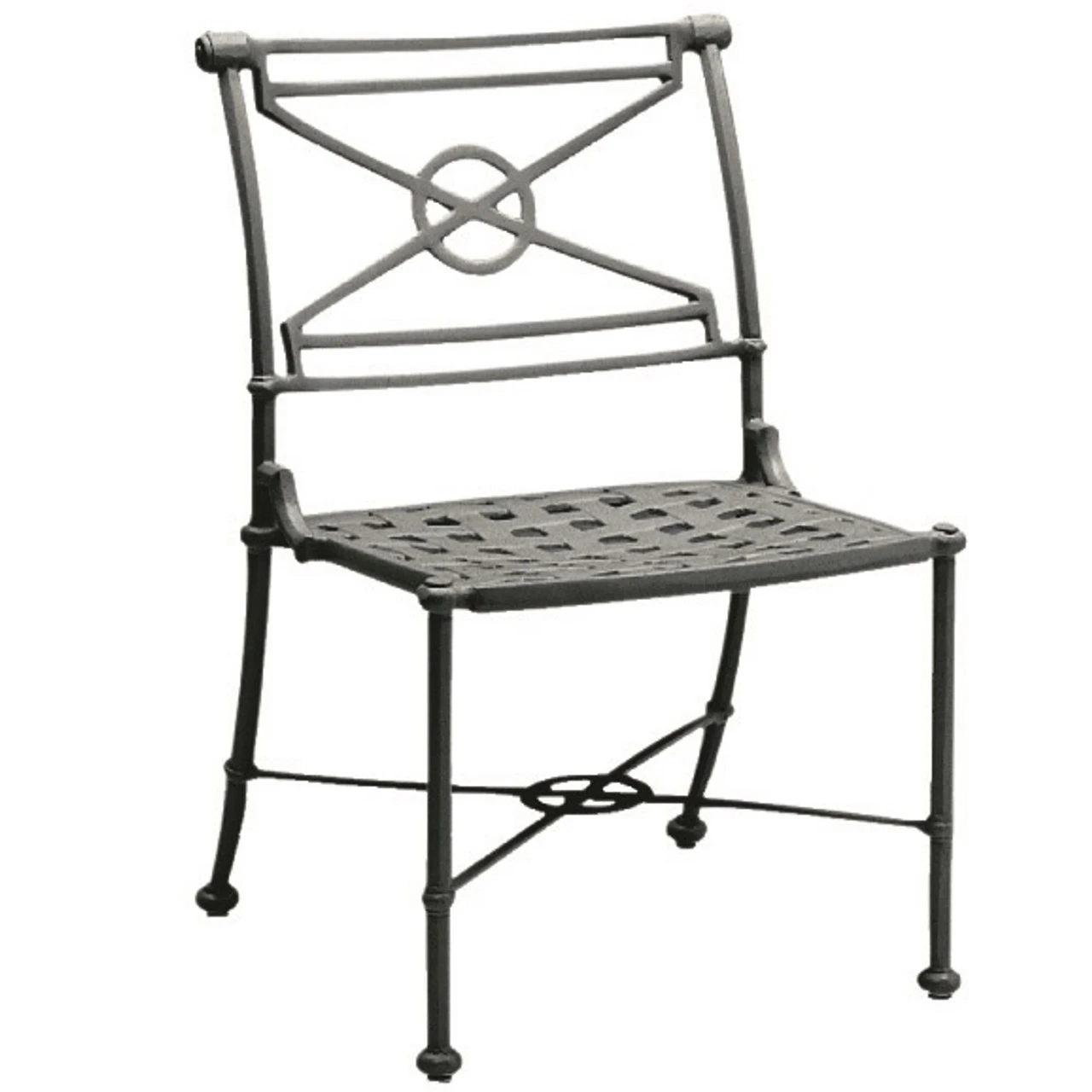Modern and elegant fuse beautifully together to create the captivating silhouette of our Woodard Aluminum Delphi Dining Side Chair. This chic seat from Outdoor Furniture Plus flaunts an ornate, X-brace on its back and basketweave seat design for outstanding support. It’s crafted entirely of powder-coated aluminum for longevity in the face of weather and has multiple finishes to choose from. Plus, you can add a seat cushion for extra comfort. Pair with your favorite metal dining table and you’ll be ready to host!