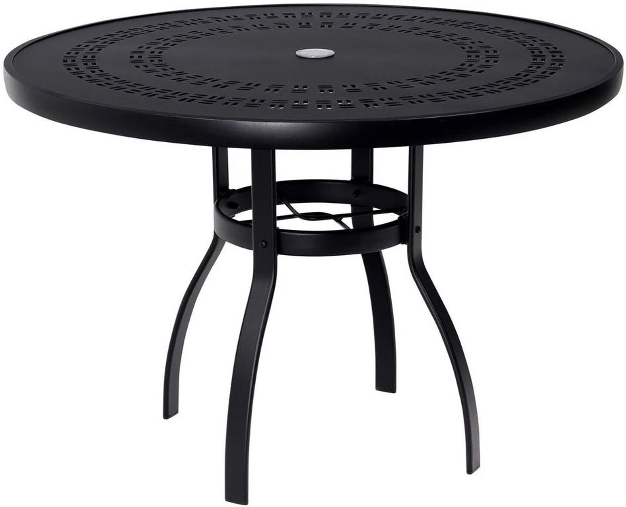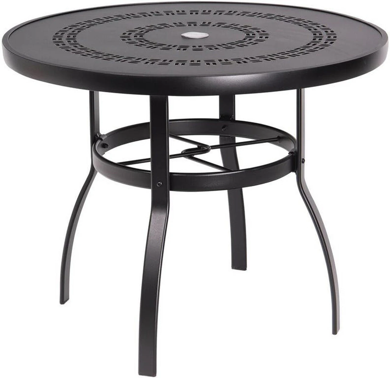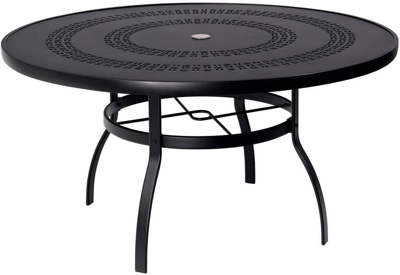Available in multiple sizes, the Woodard Aluminum Deluxe Trellis-Top Round Umbrella Dining Table from Outdoor Furniture Plus provides options to fit your space and the number of diners you plan to seat. The size options for this simple, attractive table include 36, 42, 48 and 54 diameters. Choose from various beautiful colors for the powder-coated aluminum frame and top. Add an umbrella like our 9-Foot Premium Market Umbrella if you like.