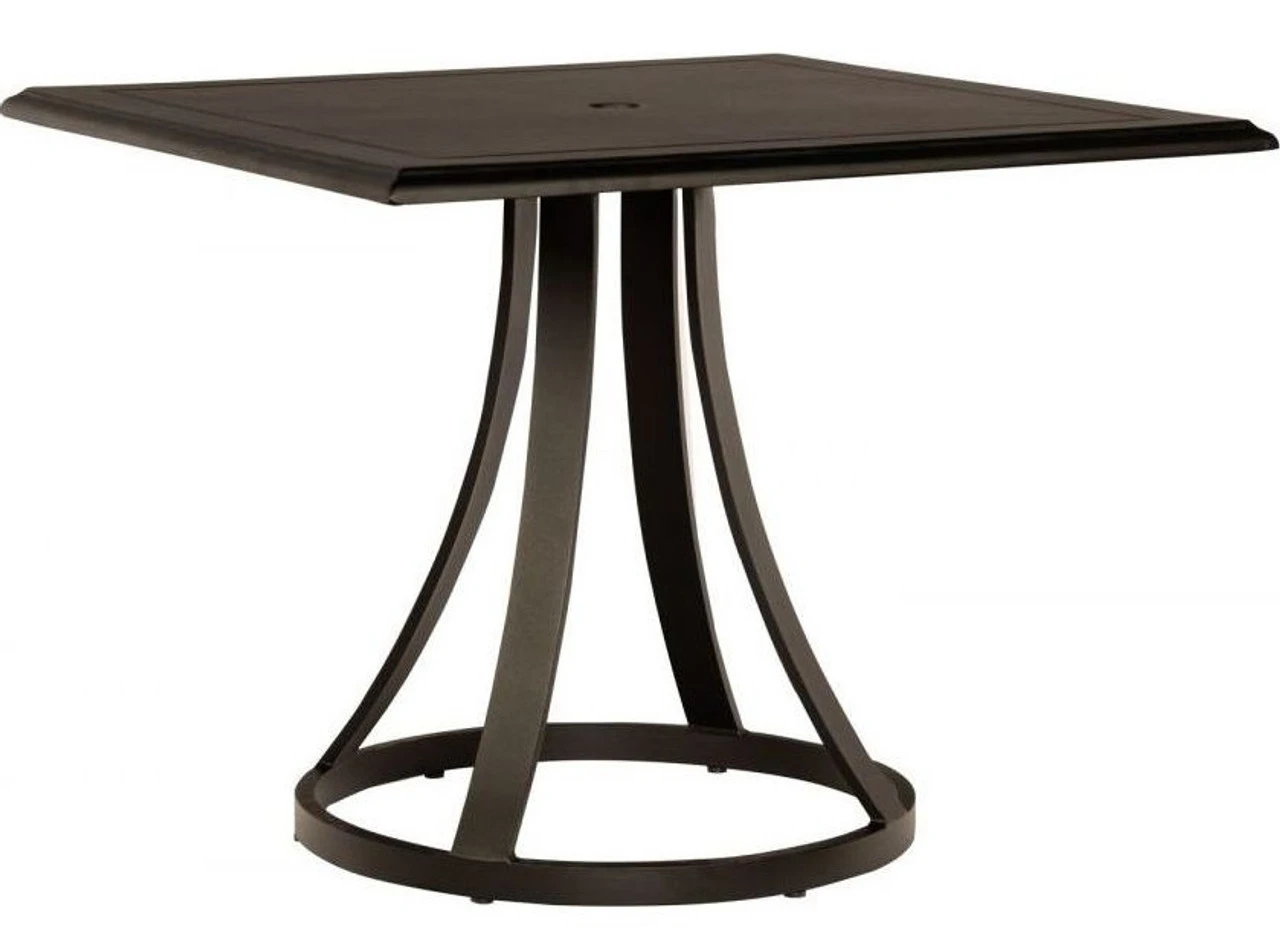 This artistic patio table boasts a powder-coated aluminum frame available in over 20 finishes. It’s durable yet easy to maintain for years. The Woodard Aluminum Solid Top 36″ Square Umbrella Bistro Table flaunts a contemporary, geometrical design that fans into a circular base, lending a light look to any outdoor space. Plus, this metal table from Outdoor Furniture Plus has plenty of surface space for an intimate brunch or small gathering with friends. Consider pairing with a stylish patio umbrella, too.