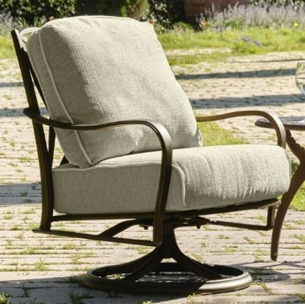 In a word? Eye-catching. The Woodard Apollo Aluminum Swivel Rocking Lounge Chair flaunts a stunning, artistic backrest, giving this outdoor chair style to go with ample support. It’s engineered of powder-coated aluminum, can come in several beautiful finishes, and features plump, all-weather cushions in a range of colors and designs. This seat from Outdoor Furniture Plus is the ideal spot to chill with friends, chat with family, or gently rock as you read a book in the fresh air. Don’t forget to add an umbrella to go with it!