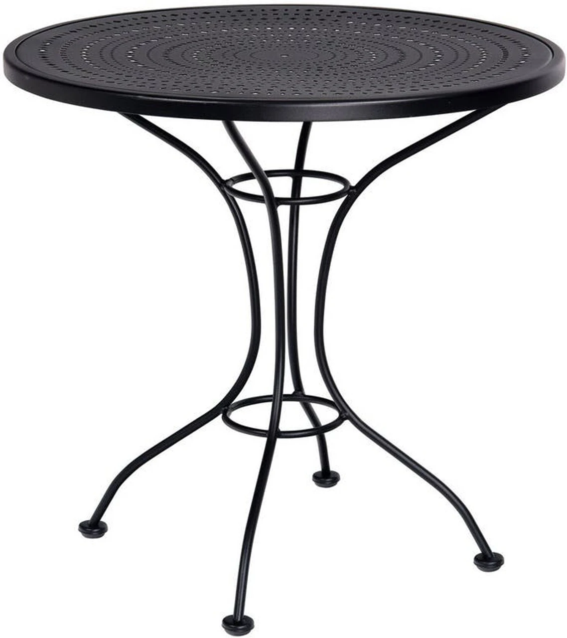 Beauty really is more than skin deep with the Woodard Wrought Iron 30 Round Patterned-Top Bistro Table from Outdoor Furniture Plus. Yes, this lovely table does feature an attractively patterned wrought iron top. But its wrought iron frame and top mean it will resist rust and weather, leading to a beautiful, long-lasting relationship. Team this attractive table up with wrought iron chairs like our Woodard Constantine Wrought Iron Bistro Stacking Armchair.