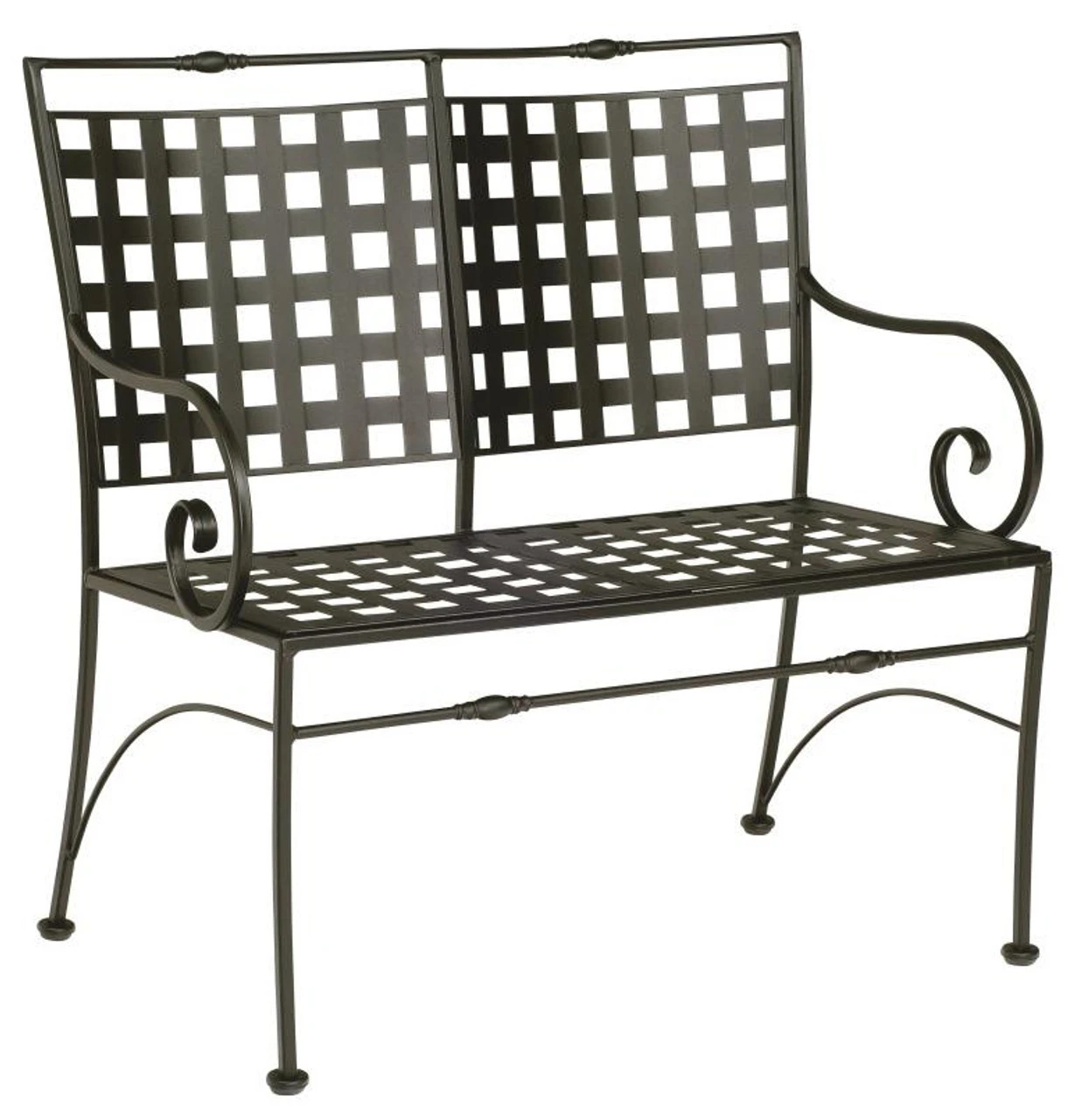 Reflect or relax in timeless style with the basketweave-inspired pattern of our Woodard Sheffield Wrought Iron Garden Bench, which is masterfully hand-forged by artisans from wrought iron. Because of this commercial-grade construction, it’s highly rust- and weather-resistant. Curling arms and contoured seats and backs offer this seat from Outdoor Furniture Plus loads of support, providing you with a relaxing feel. Select from multiple finishes, add a seat cushion, and prepare to kick back anywhere outside!