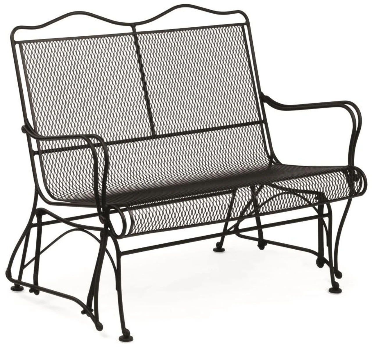 Imagine a glass of lemonade in hand while gently swaying in this Woodard Tucson High Back Loveseat Glider. Perfection! Weather-resistant wrought iron is meticulously hand-forged by skilled artisans to create the sophisticated silhouette of this piece from Outdoor Furniture Plus. It results in a long-lasting patio seat that’s stylish and versatile. Available in numerous finishes, this loveseat glider can come in your favorite color or look. Add seat cushions, combine with a side table, and enjoy!